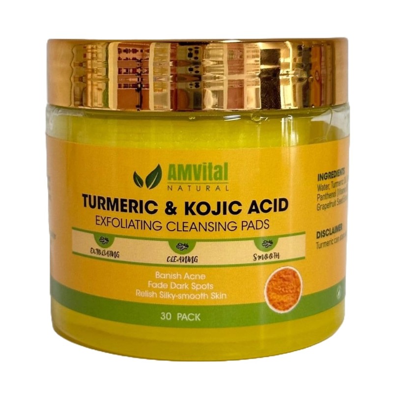 AMVital Turmeric Kojic Acid Cleansing Pads - Kojic Acid and Turmeric Cleansing Pads - Gentle & Non-Irritating - Turmeric Cleansing Pads for Dark Spots - Helps Balance Skin Oil and Water