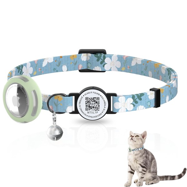 AmxminaID Airtag Cat Collar,Breakaway Cat Collar with Bells,Kitten Collar with QR Code Name Tag, Cat Collar Air Tag Holder Luminous,Adjustable Cat Collar with Pet ID Tag,Lightweight (Blue)