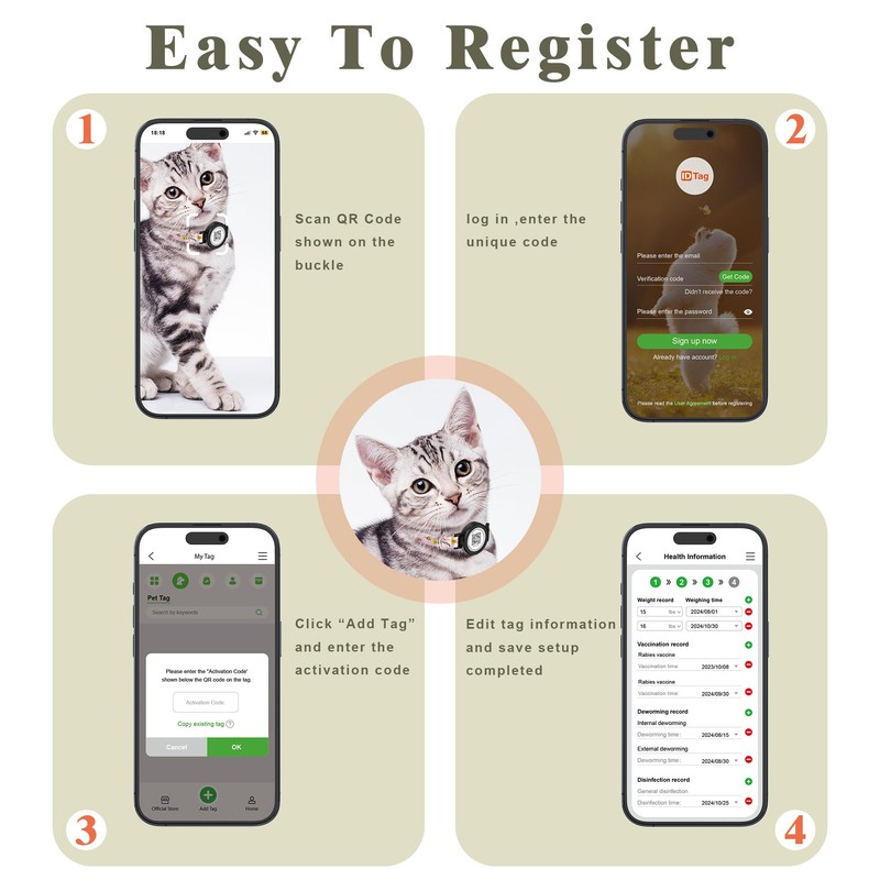- Effortless Pet Profile Setup: Just scan the QR code on the collar buckle to create a profile with your pet's photos, emergency contacts, home address, and any special info