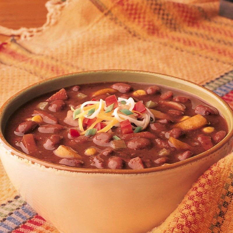 - Vegetarian chili made from organic red beans and tofu mixed with organic bell peppers, potatoes, carrots and corn simmered in a thick, flavorful Mexican-style broth for delicious, quick meals without compromise