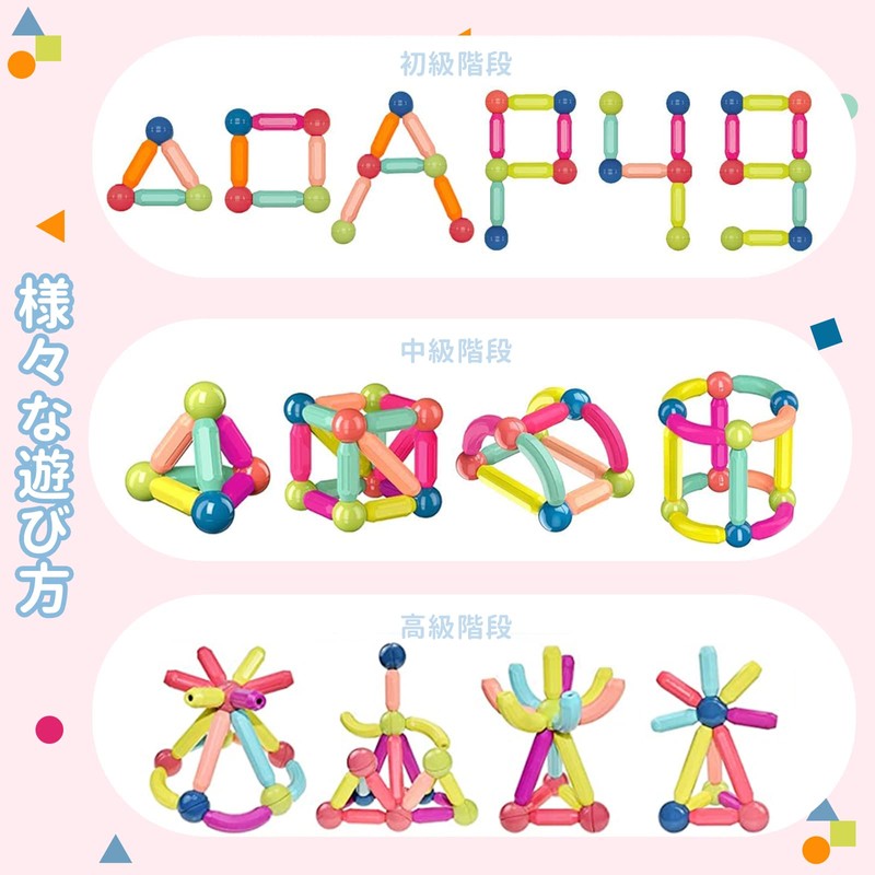 - Popular Blocks Set Contents: Magnetic Block Set: Magnetic Block Set: 6 long sticks, 12 short sticks, 10 magnetic balls, 8 bent rods, 1 Japanese instruction manual. Magnetic blocks that stick to your eyes. This is an educational toy that makes you fall in love with it. This is a popular choice for toddlers and elementary school children to create the shapes you want with ease and ease. Popular toy for ages 3, 4, 5, 6, elementary school students