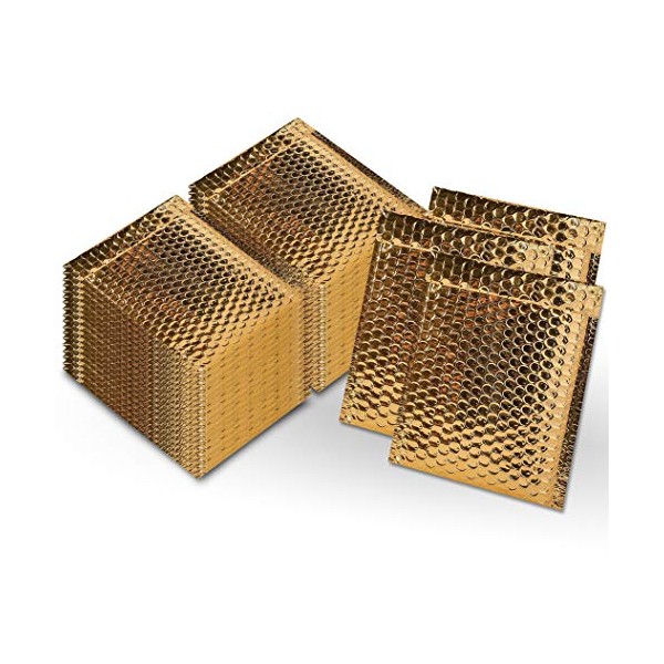 AMZ Gold Metallic Bubble Mailers 8.5 x 11, Pack of 100 Poly Bubble Mailers 8 1/2 x 11 Gold Envelopes Bubble Padded, Metallized Bubble Mailer, Stylish Cute Bubble Mailers, Shiny Gold Poly Mailers