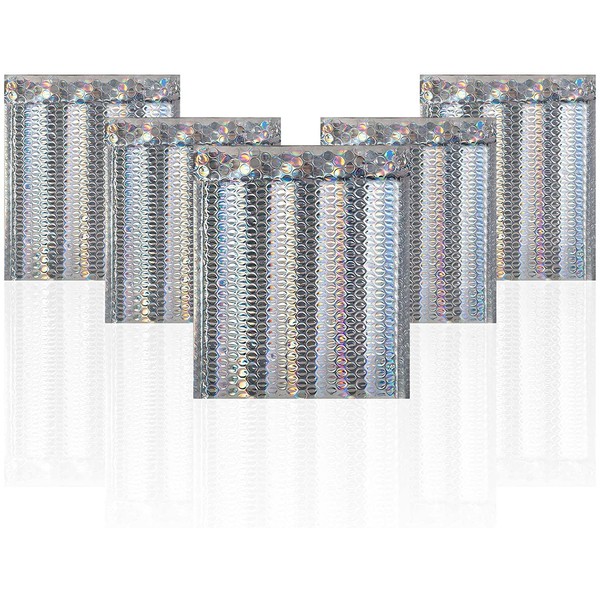 - CUSHION YOUR ITEMS WITH A HOLOGRAPHIC ENVELOPE: ship fragile items with comfort in our shipping bags (bubble mailers). In a metallic bubble mailer, your items will be intact because of the bubbles in our bulk bubble mailers. Your items will be protected thanks to our holographic poly mailers.