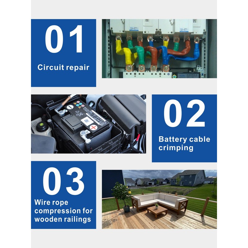 - 【Wide Application】 The crimper tool is great for battery and welding cables , power Wires , and electrical cables ,even can be rotated 180° freely for narrow space working