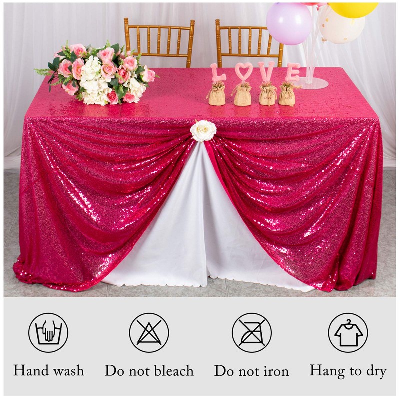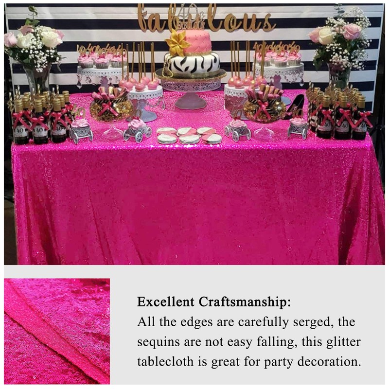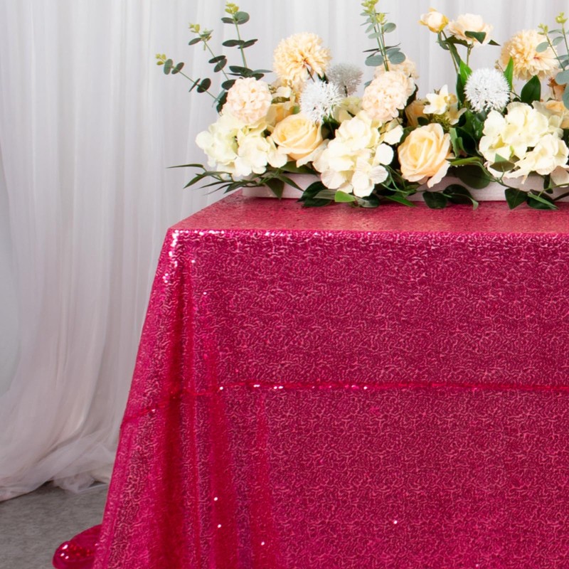 - Dazzling Sequin Tablecloth: 1pc 60x102-Inch hot pink tablecloth rectangle, perfect as a shimmering overlay for rectangular tables.