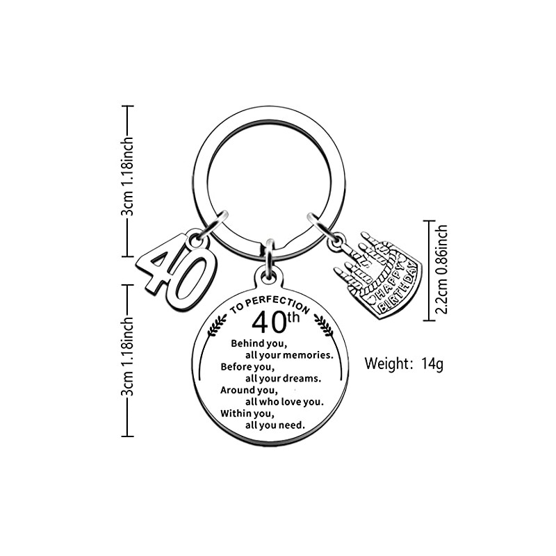 - 🎁40th Birthday keyring Material &Size: Stainless Steel, it is Nickel-free, Lead-free and Hypoallergenic. Round disc Size:1.18inches diameter
