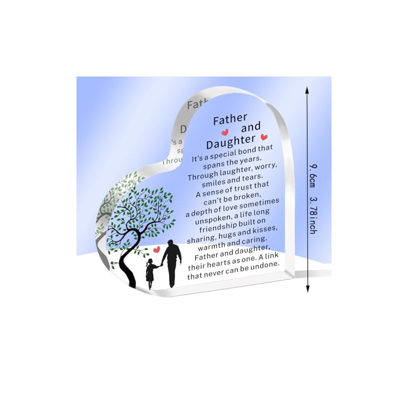 - 1.【Father Gifts from Daughter】: "Father and Daughter,It’s a special bond that spans the years. Through laughter, worry, smiles and tears. A sense of trust that can’t be broken, a depth of love sometimes unspoken, a life long friendship built on sharing, hugs and kisses,warmth and caring. Father and daughter,their hearts as one. A link that never can be undone."