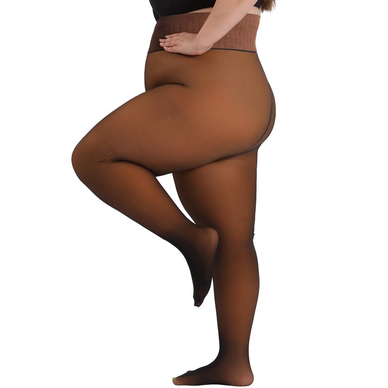 Amzshe Plus Size Fleece Lined Tights Women, Control Top Thermal Tights, Translucent Honey
