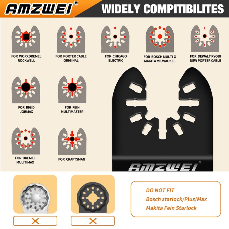 - 【Compitible with Over 98% Oscillating Tools】With a universal interface system, it is perfectly compatible with more than 98% of the oscillating tools on the market. With 3 clips adapter, Compatible with Dewalt, Bosch, Fein, Makita, Milwaukee, Ryobi and so on.