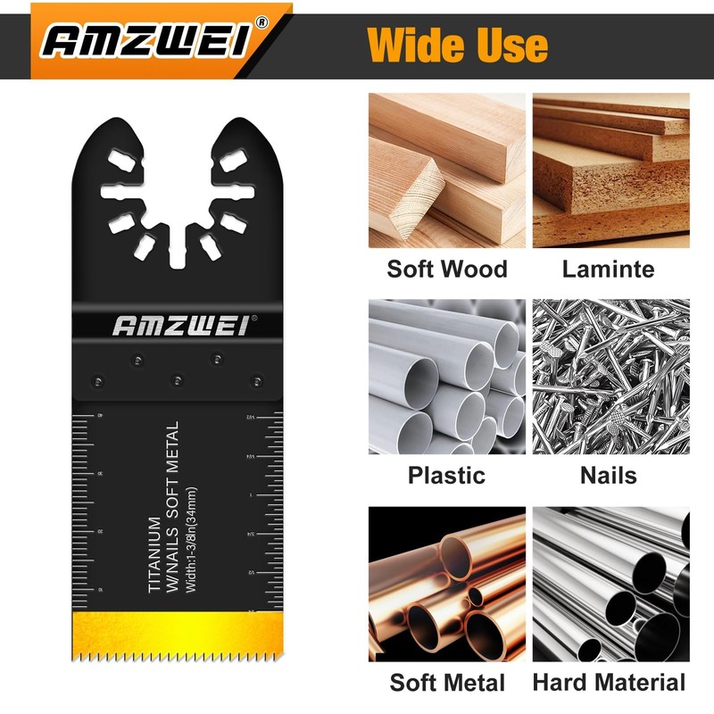 - 【5 TYPES OF MULTITOOL BLADES】We carefully match these Multi Tool Blades Kits based on the daily use scenarios of workers.. This oscillating saw blades include 5 different types of multitool blades. Including 16 packs arc edge blades for precise cutting,3 packs japanese tooth oscillating multitool blades clean cut for Wood/Plastic,4 packs bi-Metal Blades for nails cutting,2 packs titanium bi-Metal blades for soft metal cutting and 3 packs standard Wood oscillating multitool.