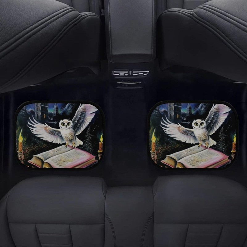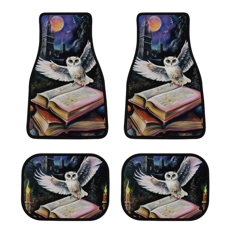 an Owl Flying Over The Magic Book 4-Piece Car Floor Mats Front and Rear Rubber Backing Carpet, Auto Foot Mats All Weather Universal Fit Car Decor Accessories Fit for SUV, Vans, Sedans, Trucks