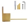 - With an adjustable block placed against the tailblock, providing leverage to flatten the soundboard. Three different positions on mounting post to accommodate different bridge styles.
