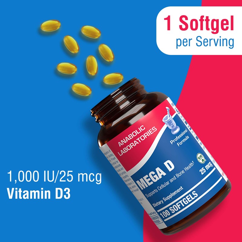 - The Mega D supplement from Anabolic Laboratories contains vitamin D3, an essential nutrient that supports bone, immune, and cellular health.