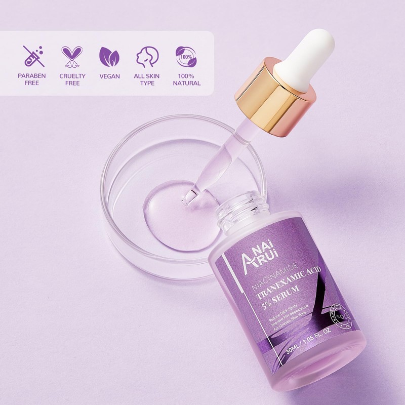 - BALANCED, EVEN SKIN TONE ANAI RUI Tranexamic Acid Face Serum is a potent blend of key ingredients including 5% Tranexamic Acid, Niacinamide, Arbutin, and Hyaluronic Acid. Experience a more uniform complexion with each use.