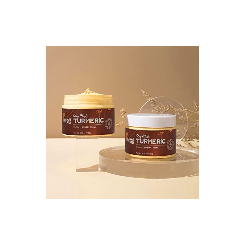 ANAI RUI Turmeric Facial Mask, Vitamin C Clay Mask with Wood Brush, Skin Care Mask for Acne, Refining Pores, Radiant & Smooth Skin, 6.35 oz