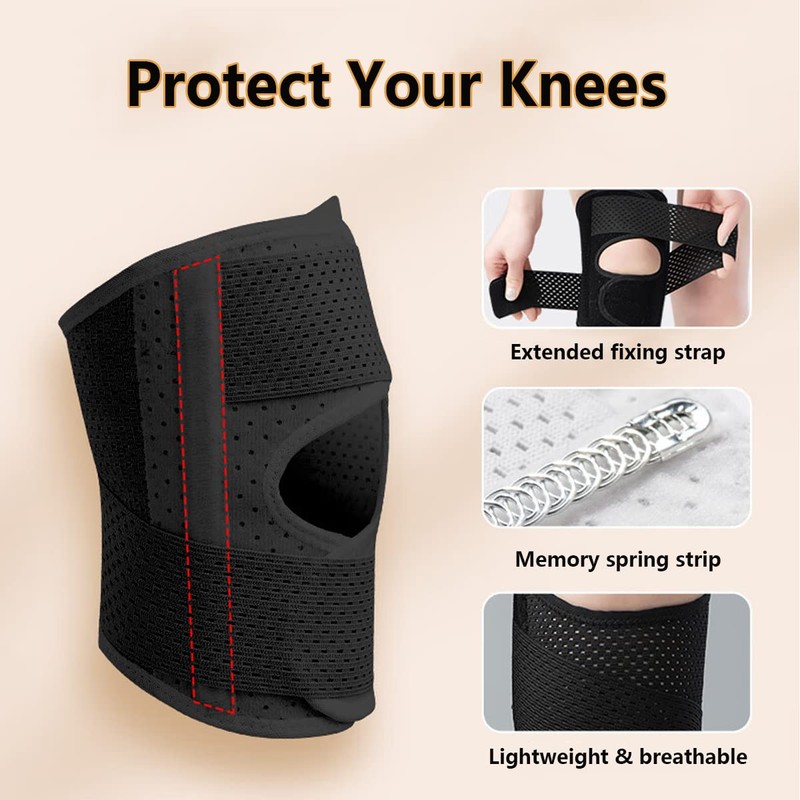 - Innovative design and comfortable support: 2 springs are sewn on both sides of the patella, this knee support fits perfectly to your knee joint, so it prevents potential sports injuries without affecting your mobility. Specially designed extended support straps are highly adjustable, which ensures a tight fit from back to front, easy to find the best fit for you! Stay doing what you like to do!