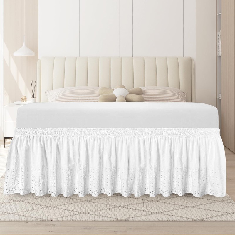 ANARACHON Twin Bed Skirt, Wrap-Around Elastic Ruffled Eyelet Bed Skirt Twin S...