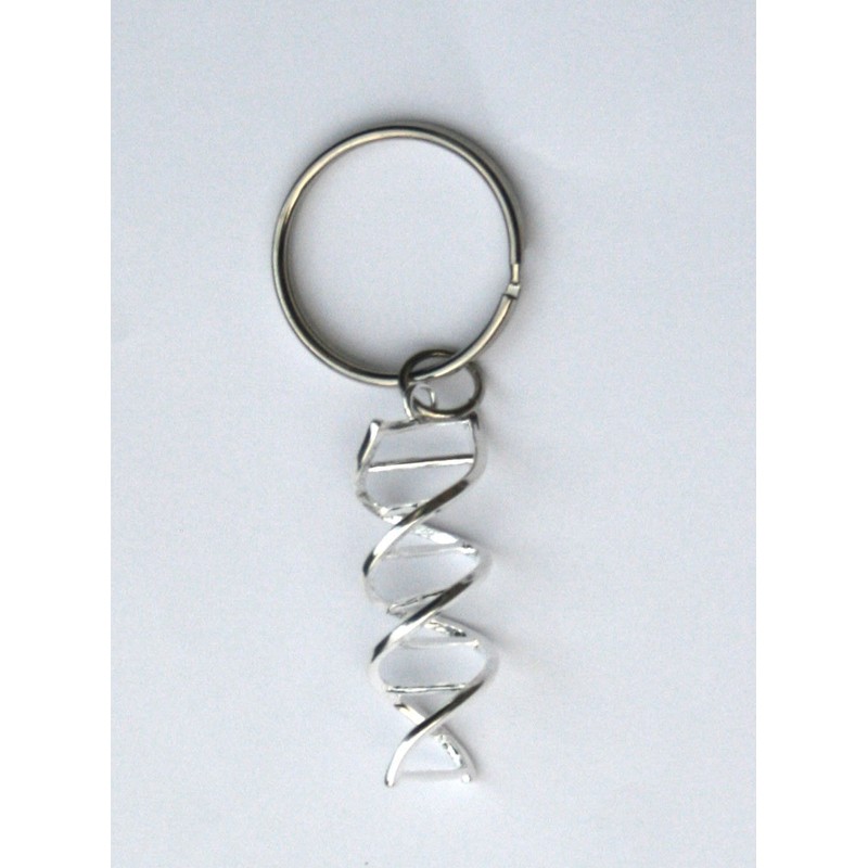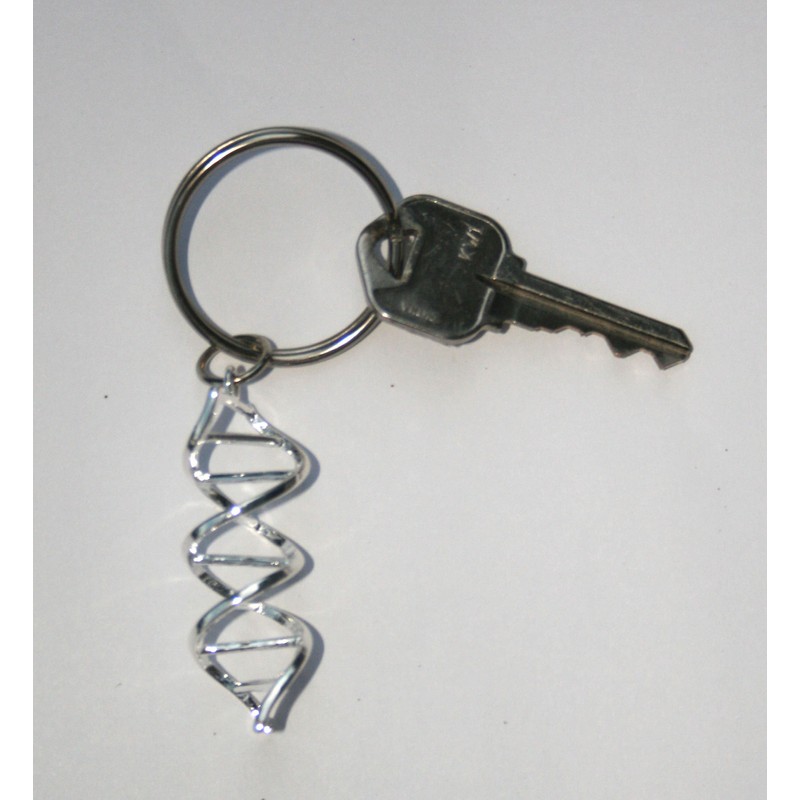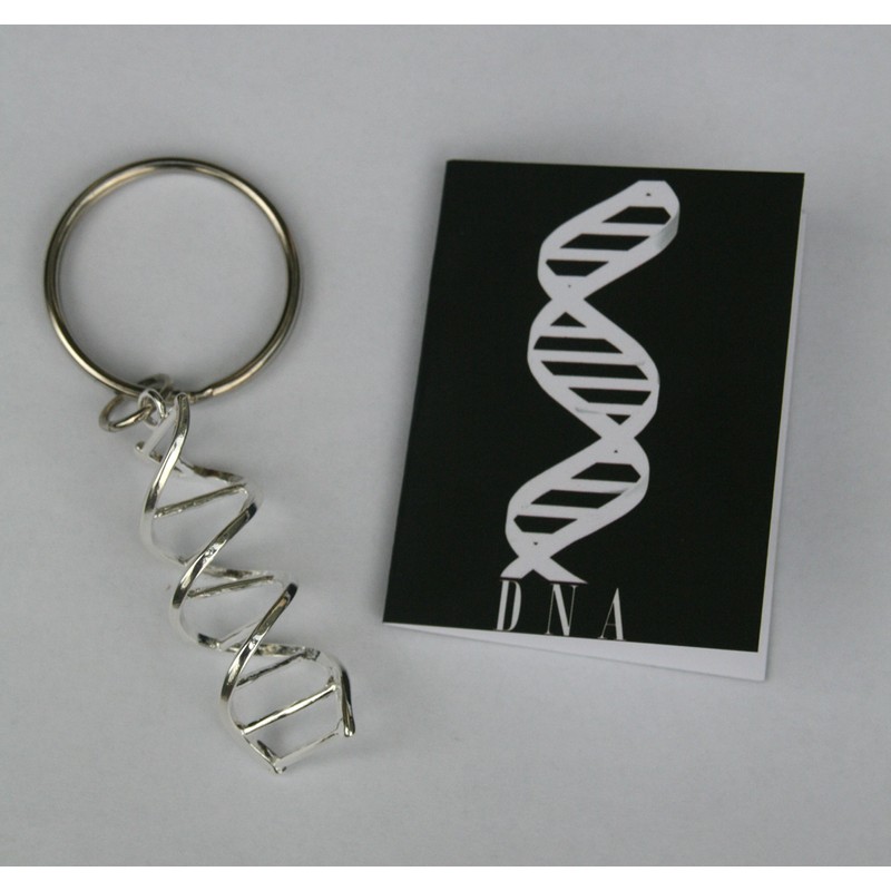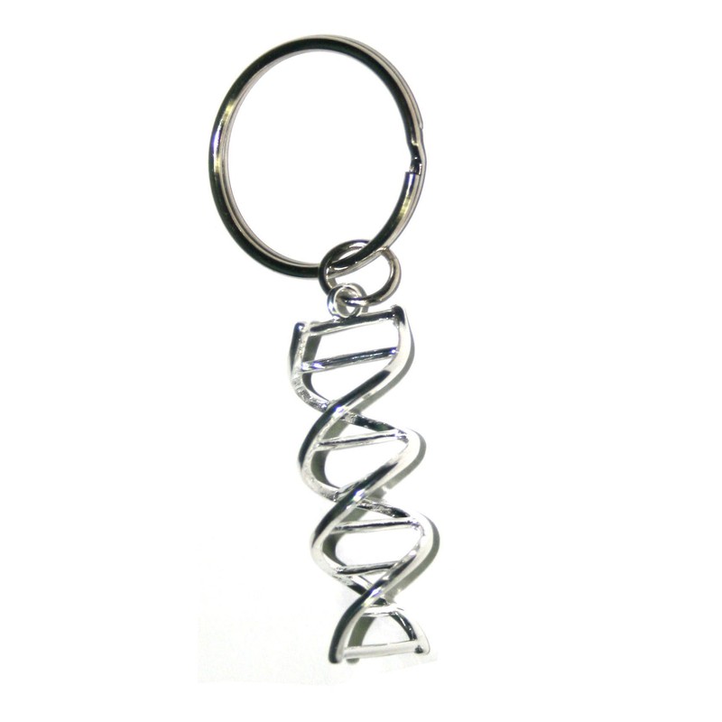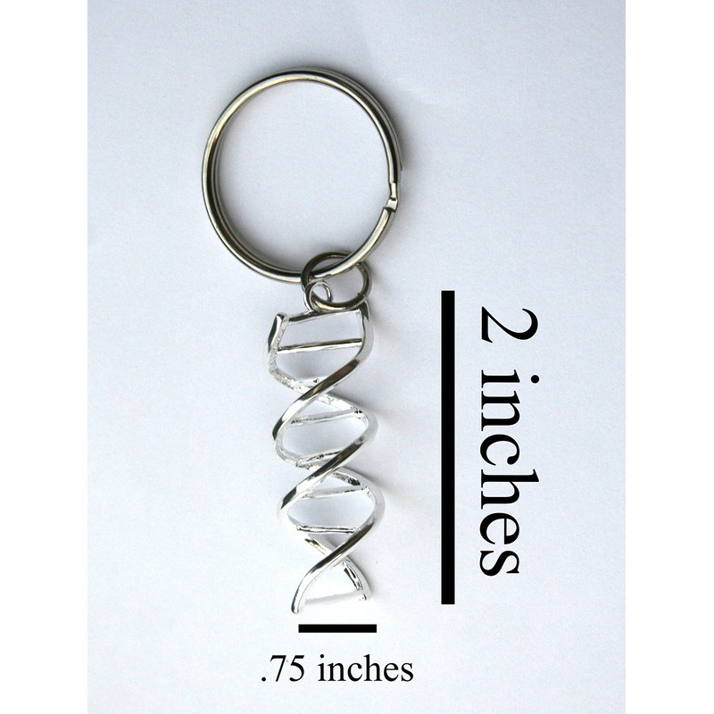 Our DNA helix science keychain is a 3 dimensional tribute to the power of biology and genetics. It measures 2 inches in height and .75 inches in width. It is made from silver plated alloy metal in the United States. It hangs from a standard stainless steel key ring. It comes gift packaged in a nice box with a small card where you could write a cute note like-- Bless your gene pool, I would like to combine our genetics, or so glad I am part of your gene pool etc. We have it all ready to go for you to make your life easier.
