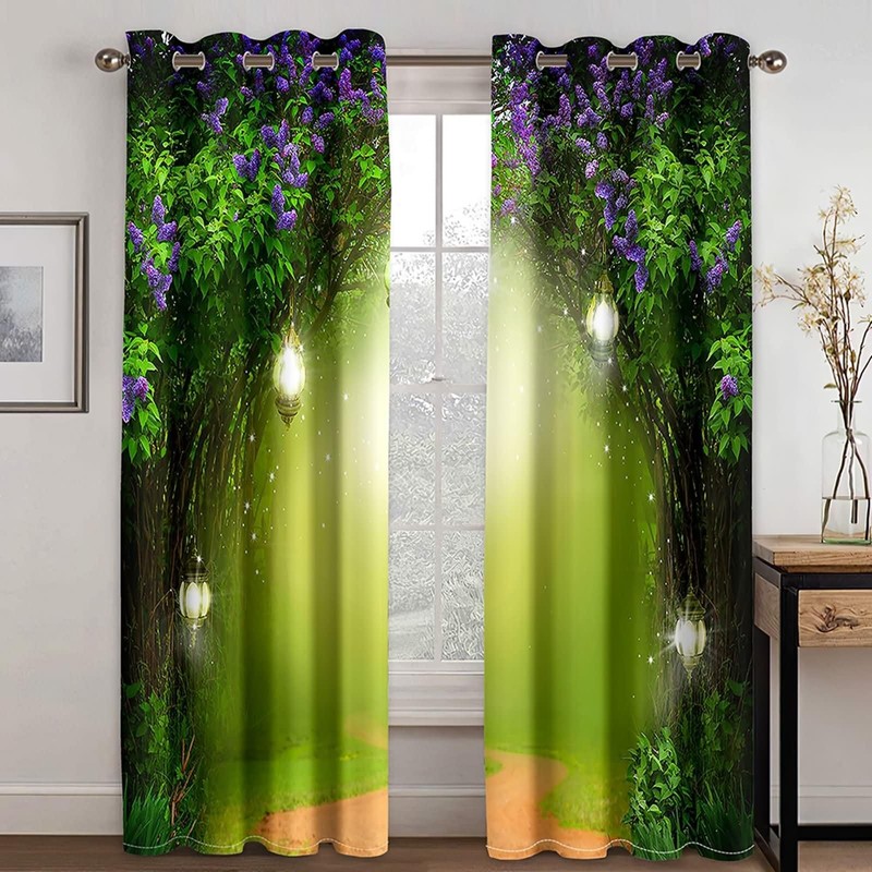 ANAZOZ Curtain Panel with Grommets,2 x 34W x 45H IN,Thermal Curtain Blackout 2 Pack Door and Road Landscape Blackout Curtains for Room Purple Green