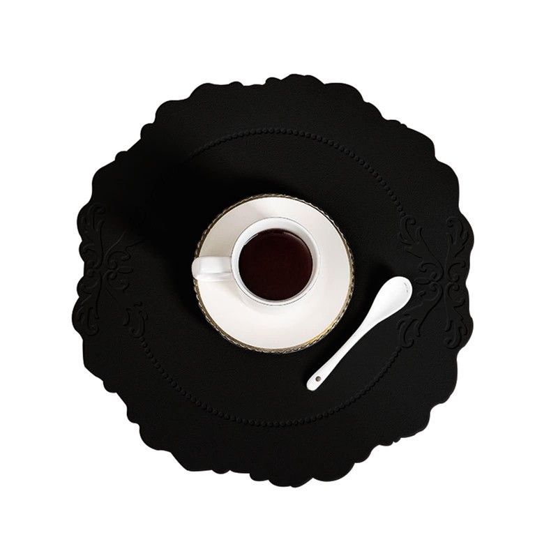 ANAZOZ Placemats Set 2,PVC Leather Place Mats 14.38 x 14.97 IN,Solid Color with Floral Edges Black Placemat Small