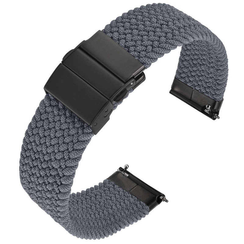 Anbeer Braided Nylon Watch Band Quick Release,18mm Stretchy Replacement Watch Strap,Grey with Black Double Push Button Folding Clasp