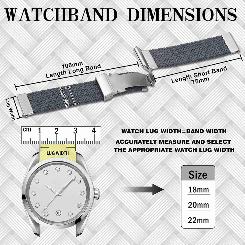 - Durable Woven Nylon Construction: Made from high-quality, tightly woven nylon, this watch strap offers a strong, breathable, and comfortable fit, ideal for daily wear and outdoor activities