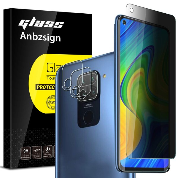Anbel Design Anbzsign [2 Pack] Camera Lens Protector and [2 Pack] Privacy Screen Protector for Xiaomi Redmi Note 9 (6.53 inch), Anti-Spy 9H Hardness Tempered Glass