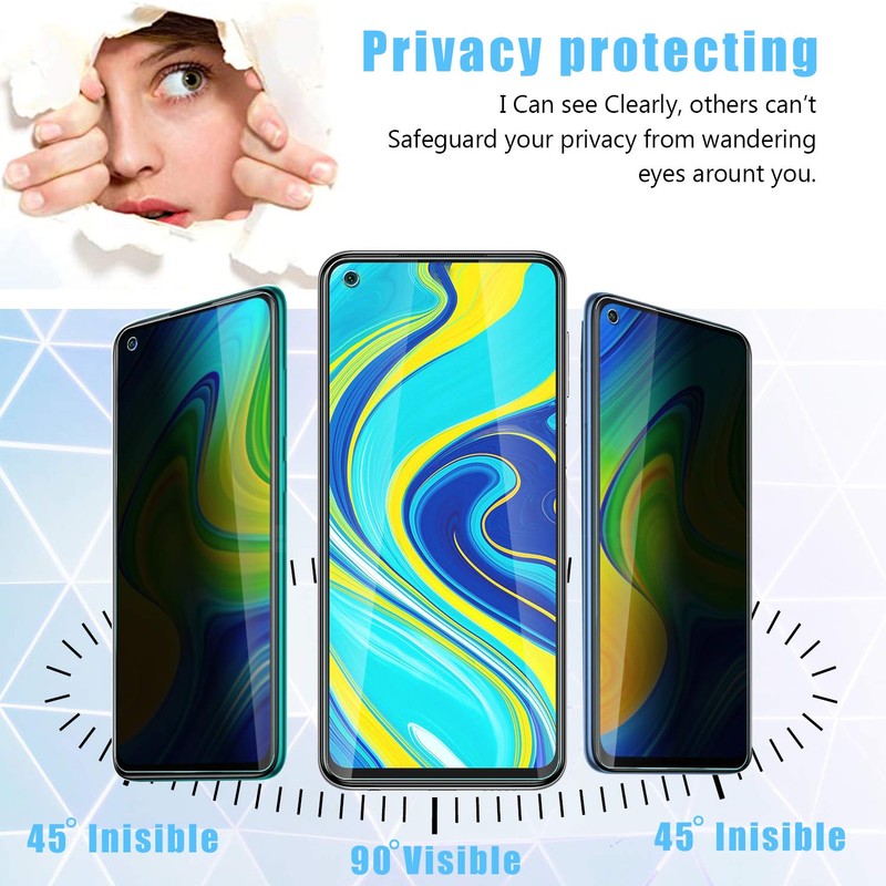 • [PRIVACY]Privacy Screen Protector keeps your personal,private,and sensitive information hidden from strangers.Block views from the left and right side within 45 degre.Screen is only visible to persons directly in front of screen.Compatibility - Designed for Redmi Note 9 6.53"(2020).