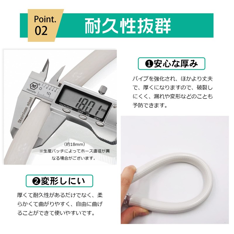 - (High Quality Materials from Singapore Import) This automatic washing machine water hose is made from imported Singapore materials, and is made of environmentally friendly PVC resin and polyacetal, so you can use it with confidence. The pipe is also strengthened to make it stronger and thicker than others. 3-layer thickness design provides excellent abrasion resistance, water resistance, and corrosion resistance. The pipe is resistant to bursting and prevents leakage and deformation. Not only is it explosion-proof, thick and durable, it is soft and easy to bend, it can bend freely and easy to use