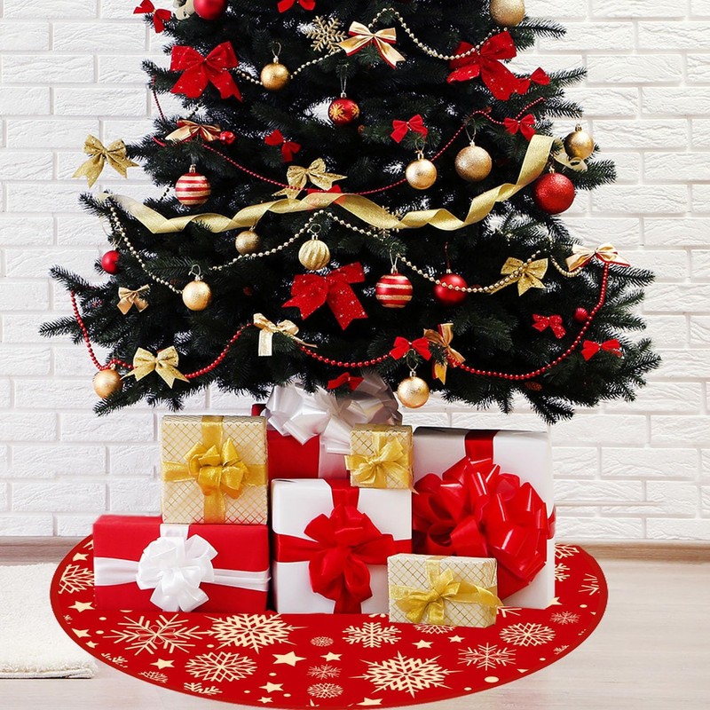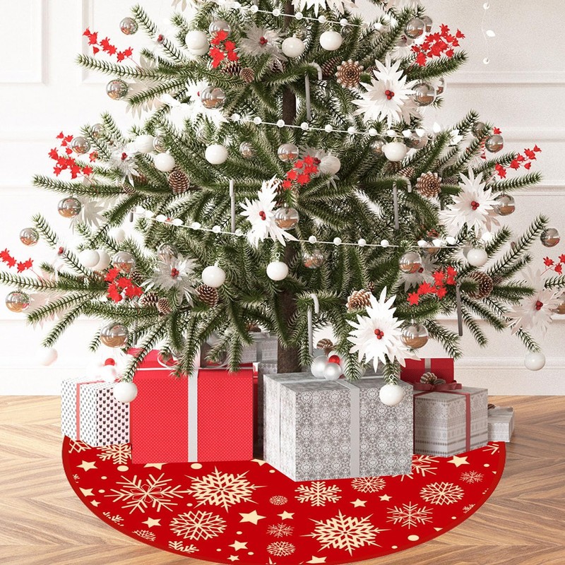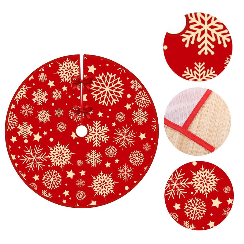 - CHRISTMAS TREE BLANKET Delight your family with our red Christmas tree skirt with snowflake and star patterns. It is made of skin-friendly short plush fabric and protects the floor from needles and candle wax.