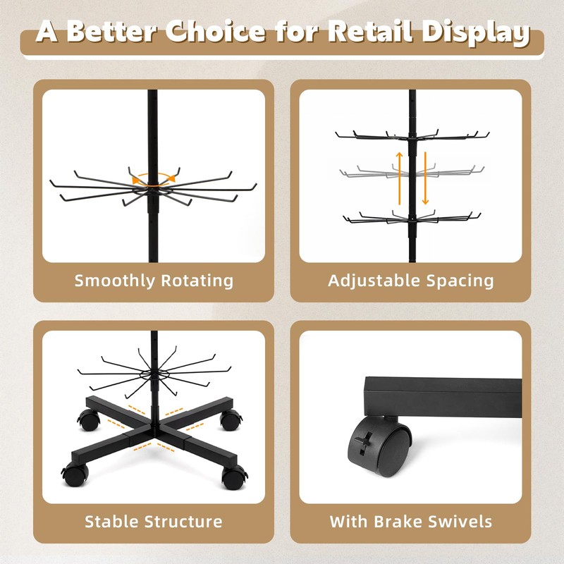 - 【MULTI-SITUATION USE】Our rotating display stand is highly adaptable, making it an excellent choice for vendor events, craft fairs, retail stores, malls, showrooms, bedrooms, and walk-in closets. It helps you keep items organized while offering exceptional convenience in a variety of settings!