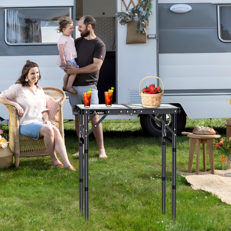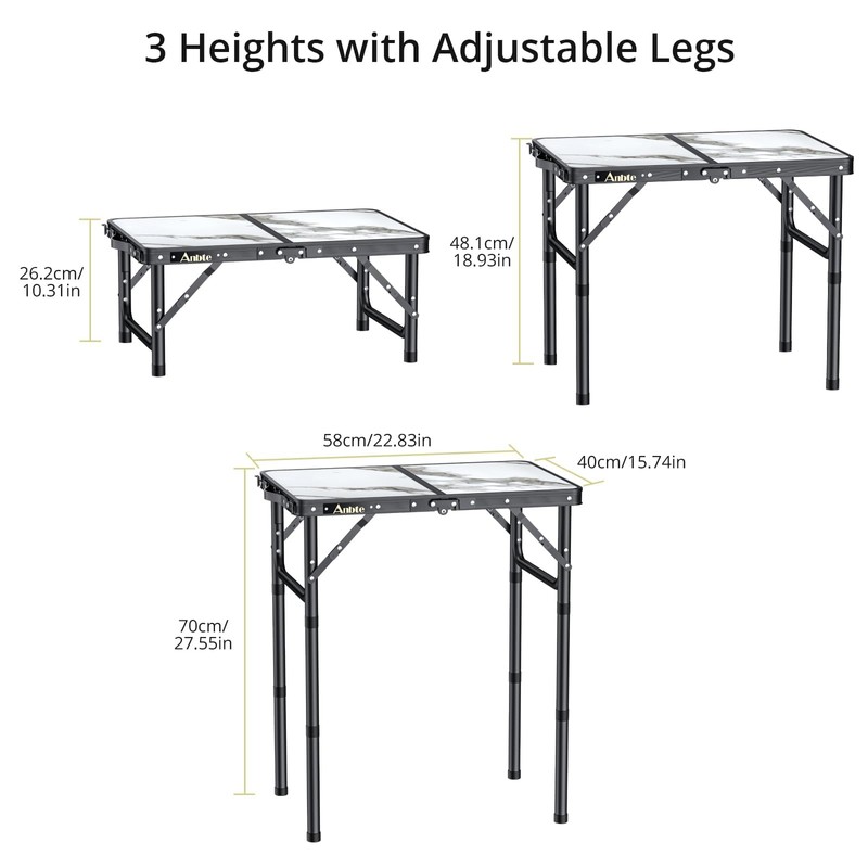 Anbte Folding Camping Table, 2ft Aluminum Small Folding Table 3 Adjustable Height Max 27.5", Portable Table with Carry Handle, Lightweight, for Outdoor Indoor Travel Camping Picnic BBQ