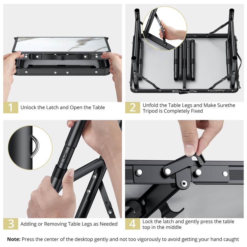 - 【Premium Quality Materials, Strong Load-Bearing】 Anbte portable folding table's frame is made of thickened aluminum alloy and can hold up to 66 pounds, making it extremely stable. It comes with a U-shaped frame and buckles for added stability and durability