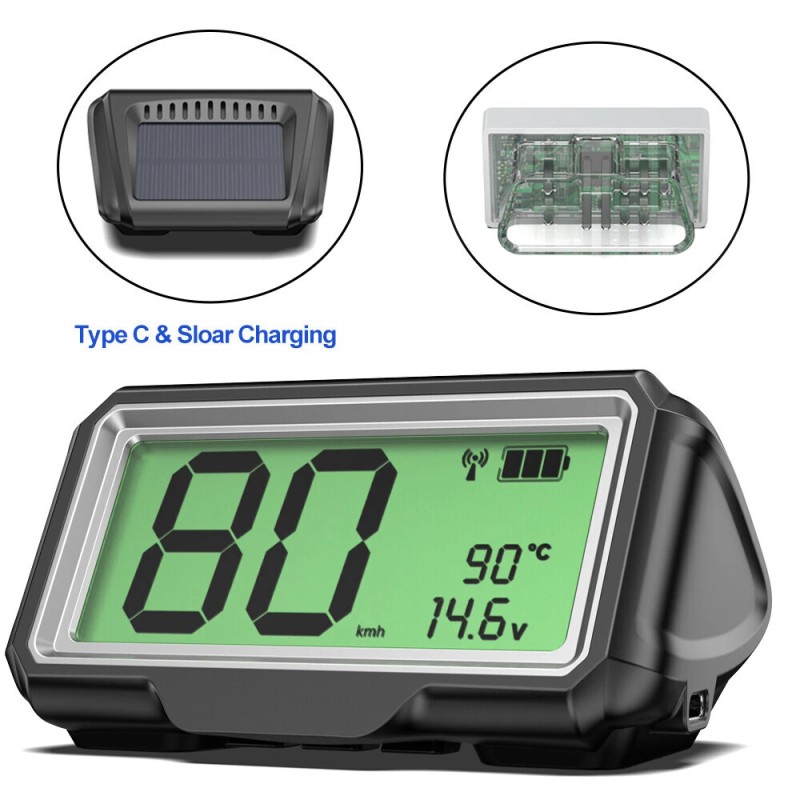 – Add Solar Panel, it can charge automatically under sunshine. And take about 8 hours to charge the HUD to full with solar power. Under sunshine, the it can work about 130 days continuously without USB charging.