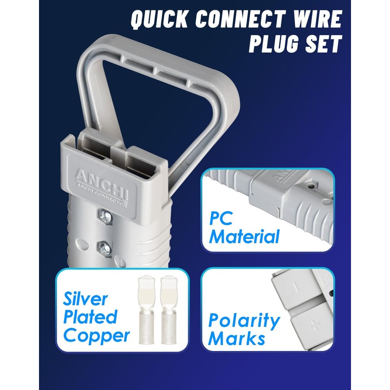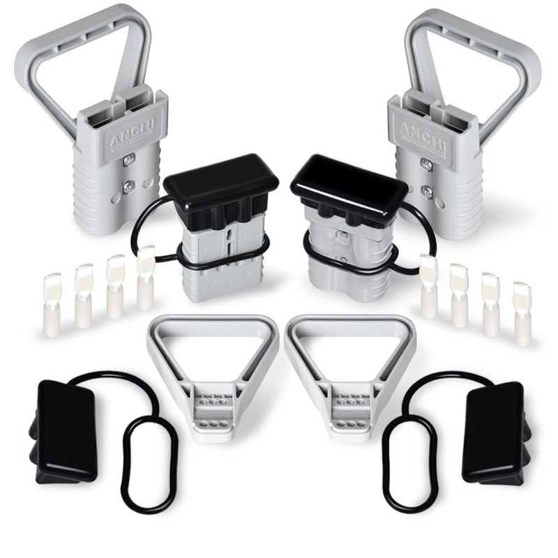 ANCHImsr Kit 350 Amp 4Pcs Connectors Plugs 350A Quick Connect Disconnect 600 V+ 4 Pcs 350 amp Handle Battery Power Connector+4 Pcs Cover Dust(350A Grey 4Pcs 2/0AWG)