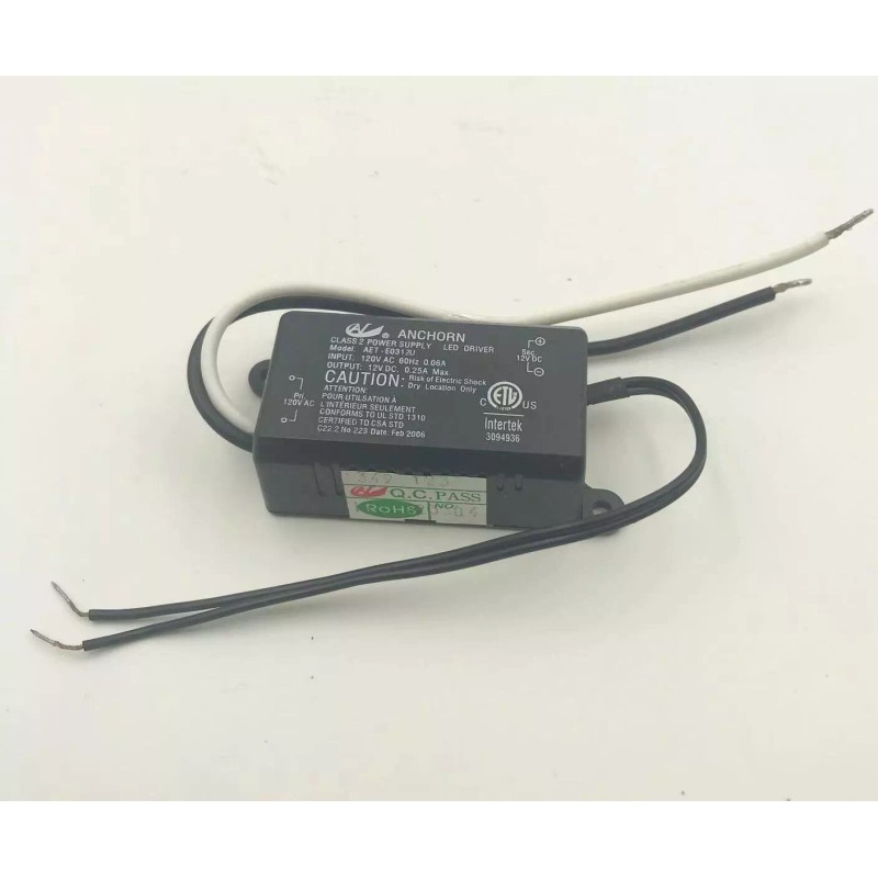 Anchorn Led power supply model AET - E0312U, Input: 120V Output 12V DC