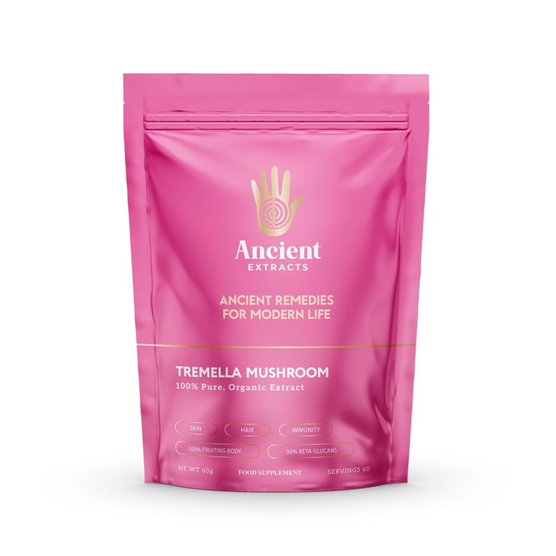 Ancient Extracts Tremella Mushroom Powder with 30% Beta Glucans - Snow Fungus Extracts - Better Digestion and Skin Health Support - Superfood, Adptogen (60g)