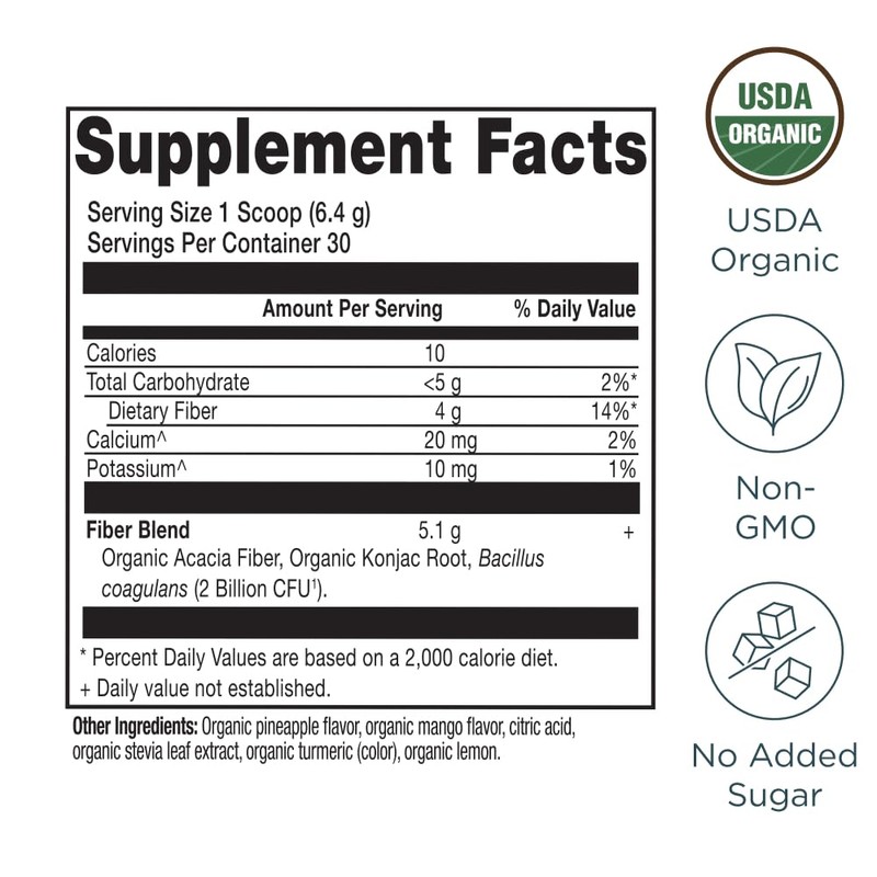 • USDA Certified Organic: Made with non-GMO ingredients, free from added sugar and toxic pesticides, ensuring a clean, delicious, and easy-to-incorporate fiber supplement.