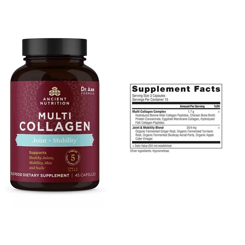 Ancient Nutrition Dr Axe Collagen Pills 45 Capsule for Joint Support, Multi Collagen For Skin Nail