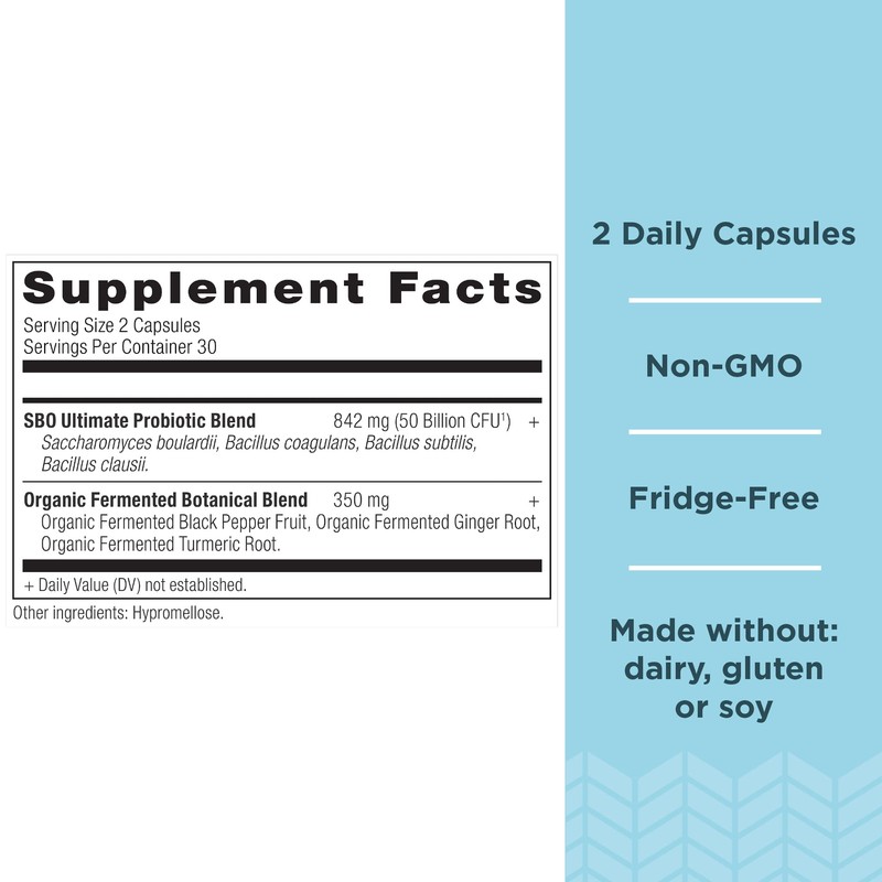 - 50 Billion CFU – Unique blend of shelf-stable probiotics including Saccharomyces boulardii, Bacillus subtilis, Bacillus coagulans, and Bacillus clausii are brought together to provide 50 Billion CFU* Our Organic Fermented Botanical Blend helps maximize the benefits of a healthy diet.