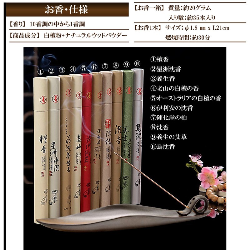 - Made of ceramic, it can be washed with water. Cleaning brush included The incense set is randomly set from 10 different tones. 1 tube of incense: about 0.7 oz (20 g), about 35 sticks 1 piece: φ0.07 inch (1.8 mm) x 8.3 inch (210 mm); Burning time approx. 30 minutes
