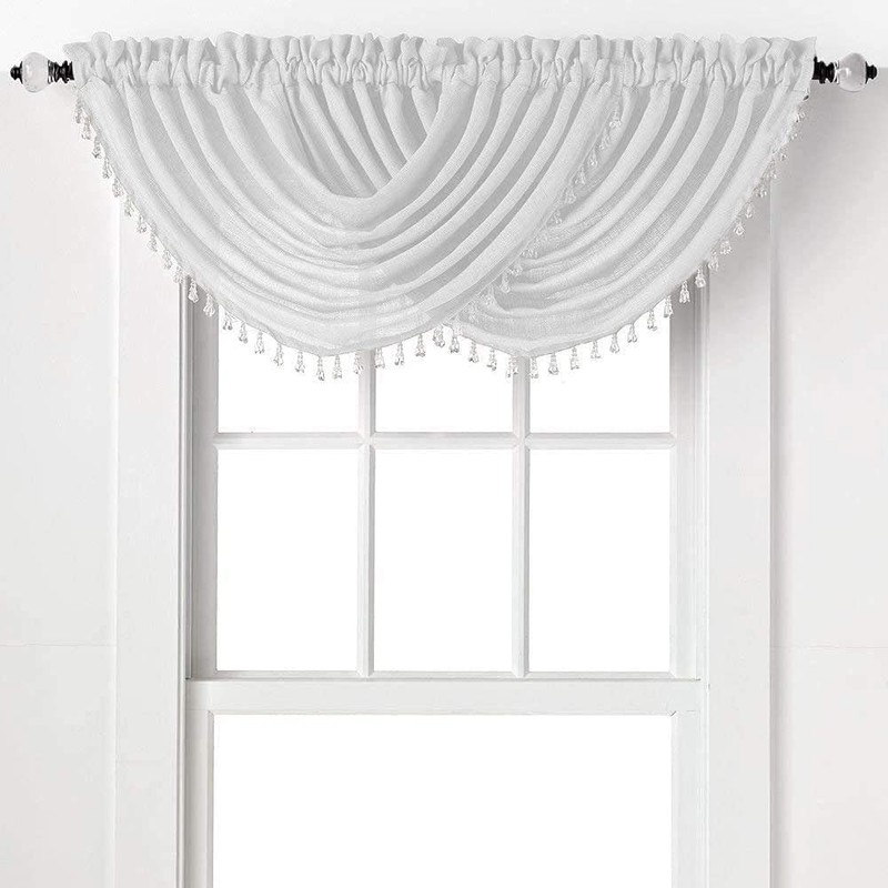 - This fashionable sheer waterfall valance combined with curtain will complete the room setting in any home. Perfect for your living room, bedroom etc.