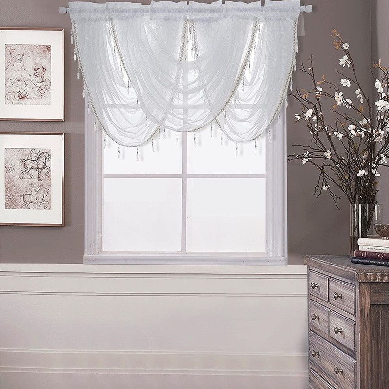 - Beautiful sheer waterfall valances with elegant tassels add fashion and luxury, simple texture creates luxurious fullness look and immediate impression.