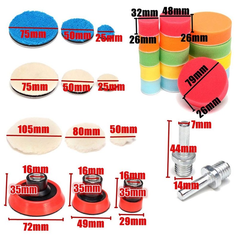 ANCLLO 30pcs Polishing Pad Kit, Sponge and Plush Buffing, Bendable, Washable, and Reusable, for Car Sanding, Polishing and Waxing