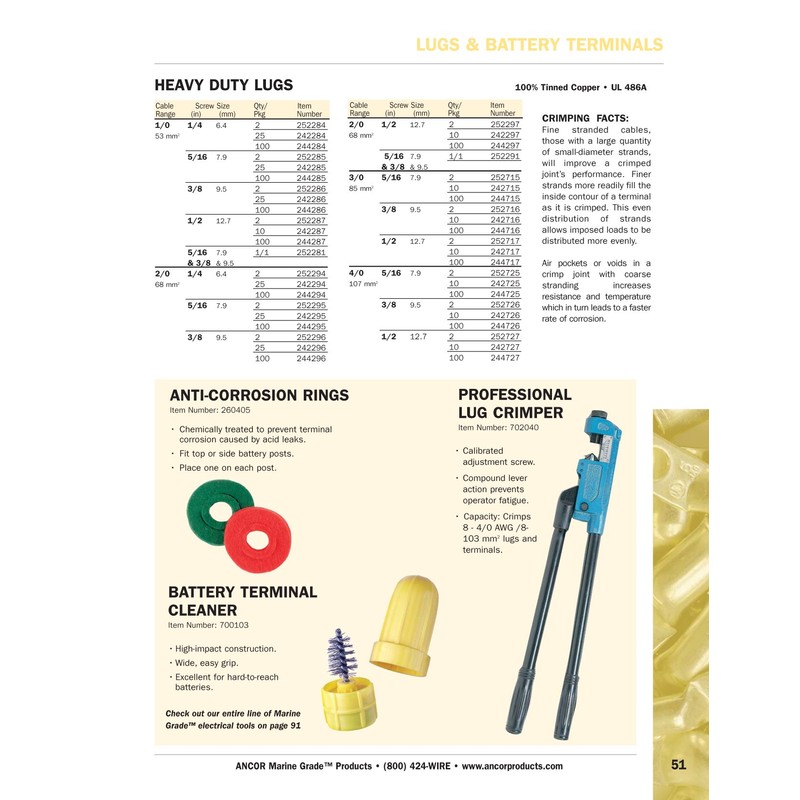 - Manufactured from 100% heavy-duty annealed tinned copper, providing for maximum current flow while resisting corrosion from salt and moisture