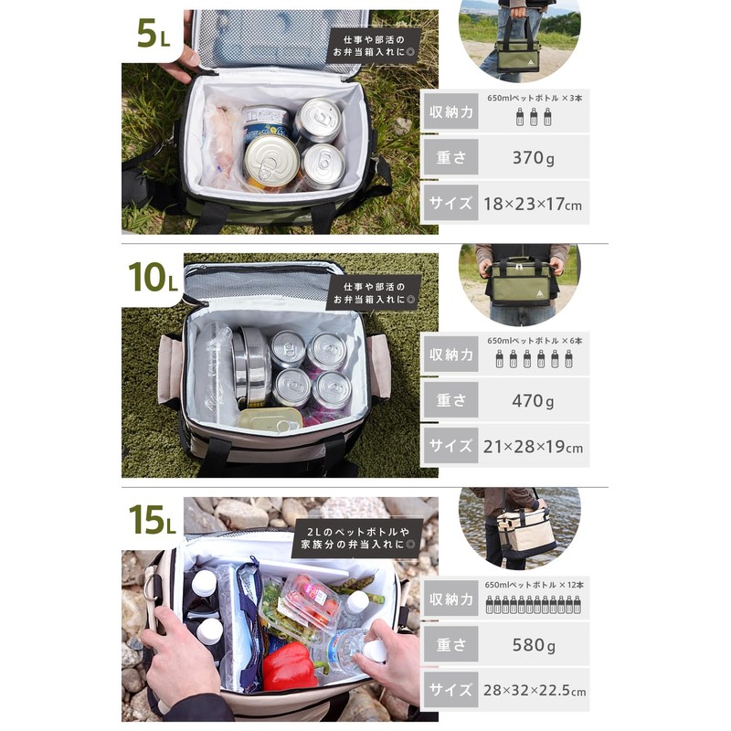 AND MYSELF Cooler Box, Small, Lightweight, Soft, Camping, Solo Camping, Cold Bag, 1.3/2.6/4.0 gal (5/10/15 L), Beige, 2.6 gal (10 L)