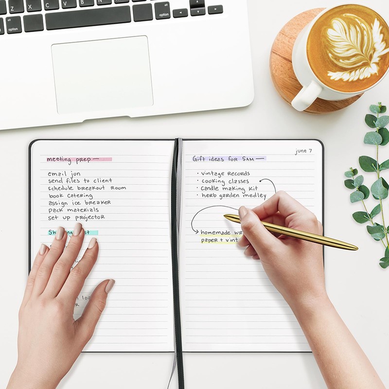 - DURABLE HARDCOVER: A durable vegan leather hardcover protects this notebook from wear and tear while providing a comfortable writing surface. An expandable back pocket holds notes, business cards, and small papers, and includes free sticker labels.