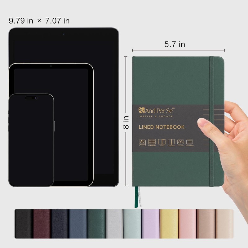 &And Per Se Lined Journal Notebook, 160 Pages, A5 5.7 x 8 inches College Ruled Thick Paper Notebook Journals for Writing, Hardcover Notebooks for Women Men Office School (1 Pack, Green)