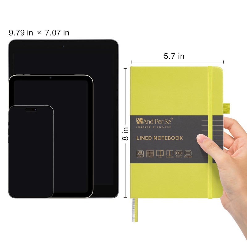 &And Per Se Lined Journal Notebook, 160 Pages, A5 5.7 x 8 inches College Ruled Thick Paper Notebook Journals for Writing, Hardcover Notebooks for Women Men Office School (1 Pack, Lime Green)