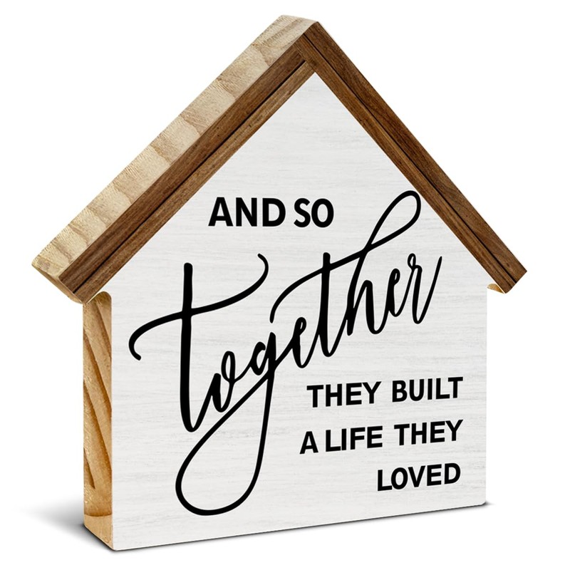And So Together They Built a Life They Loved House Shaped Wood Sign, Family Sign Love Decor, Farmhouse Living Room Bedroom Home Decor